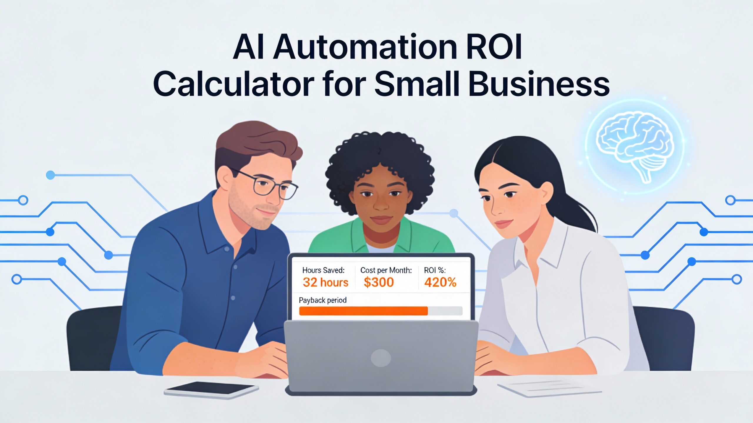- Calculate the ROI using an actual AI automation ROI calculator or the formulas provided (plug in your real numbers)