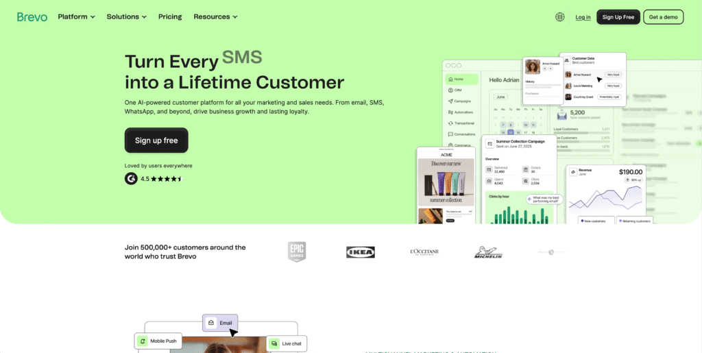 Best for: Small businesses on tight budgets, retailers with large email lists, businesses wanting SMS + email automation, and those seeking affordability without sacrificing power.
