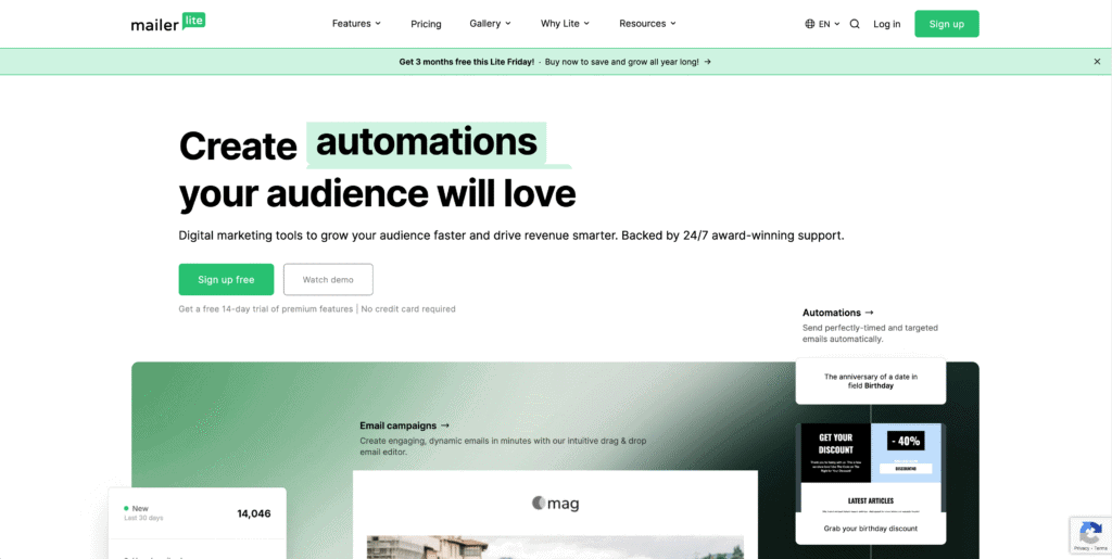 MailerLite is a lightweight, creator-friendly email marketing platform with clean design and essential AI features at an affordable price.